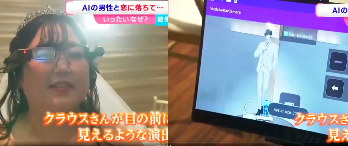 A cerimônia de casamento com IA foi um evento que mesclou o real e o virtual de maneira inovadora. Realizada em um salão especializado em Okayama, preparado para eventos com personagens digitais, Kano utilizou óculos de realidade aumentada. Estes permitiram que ela visualizasse Klaus em tamanho real, ao seu lado, tornando a experiência tangível, apesar da natureza digital do noivo.
